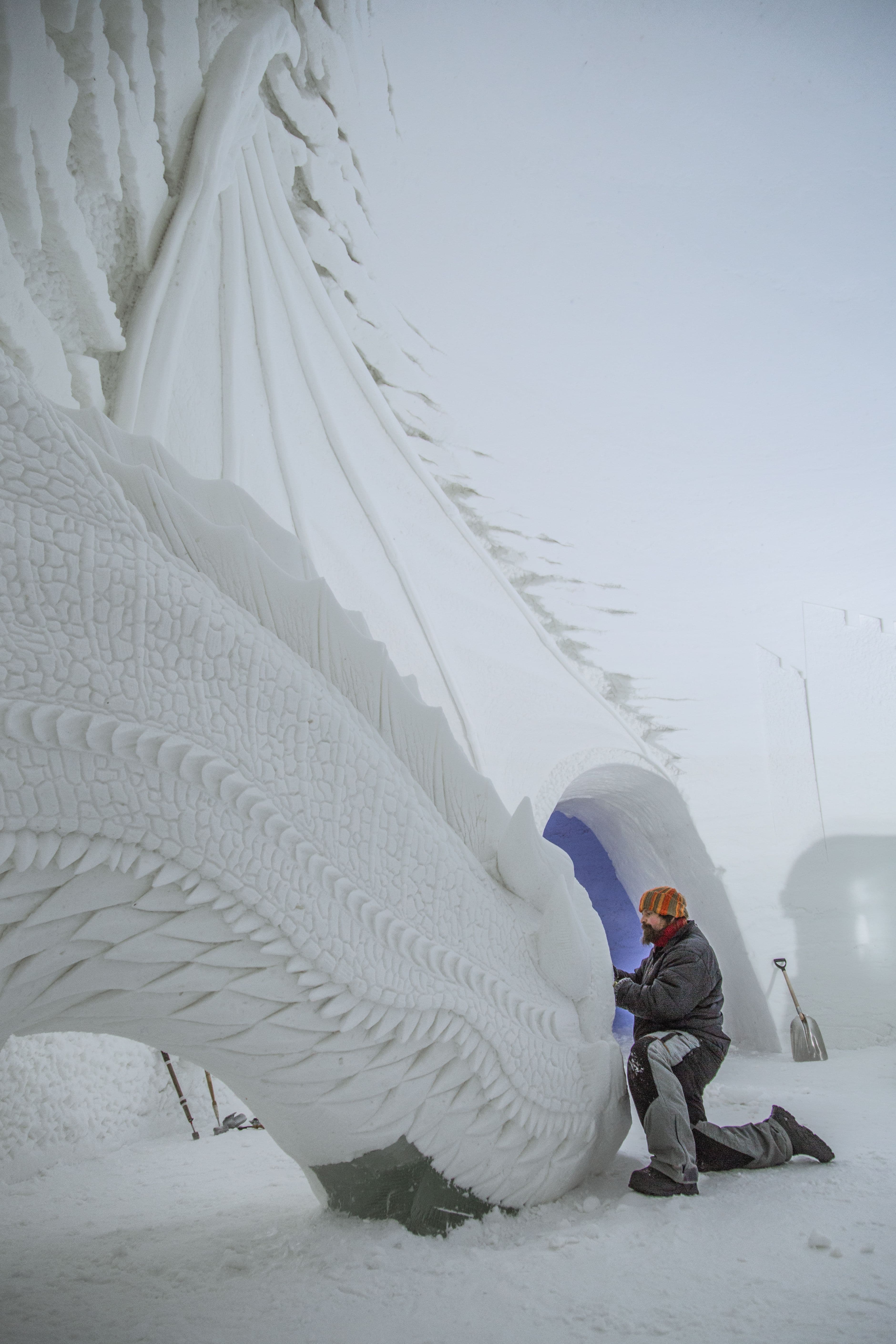 Lapland Hotels SnowVillage is rebuilt each year from scratch, captivating visitors with its changing theme and stunning ice art. The annual ice exhibition offers a mesmerizing experience that includes snow and ice art, a unique ice bar, a ceremony room, a snow suite, a movie theater, and a favorite for both children and adults: an ice slide!