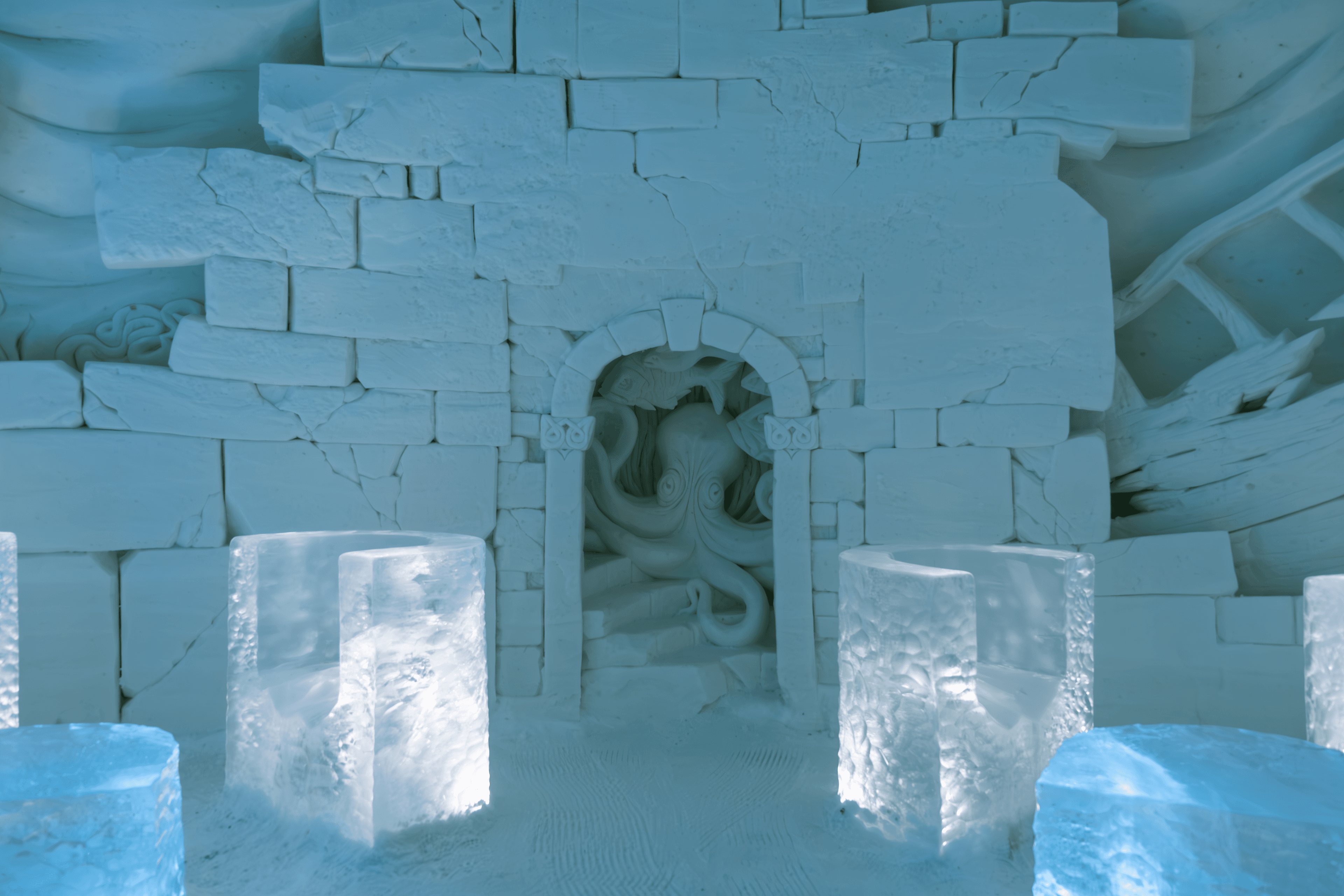 Lapland Hotels SnowVillage is rebuilt from scratch every year in November-December, and due to the annually changing theme, each year's ice exhibition is a completely unique experience.