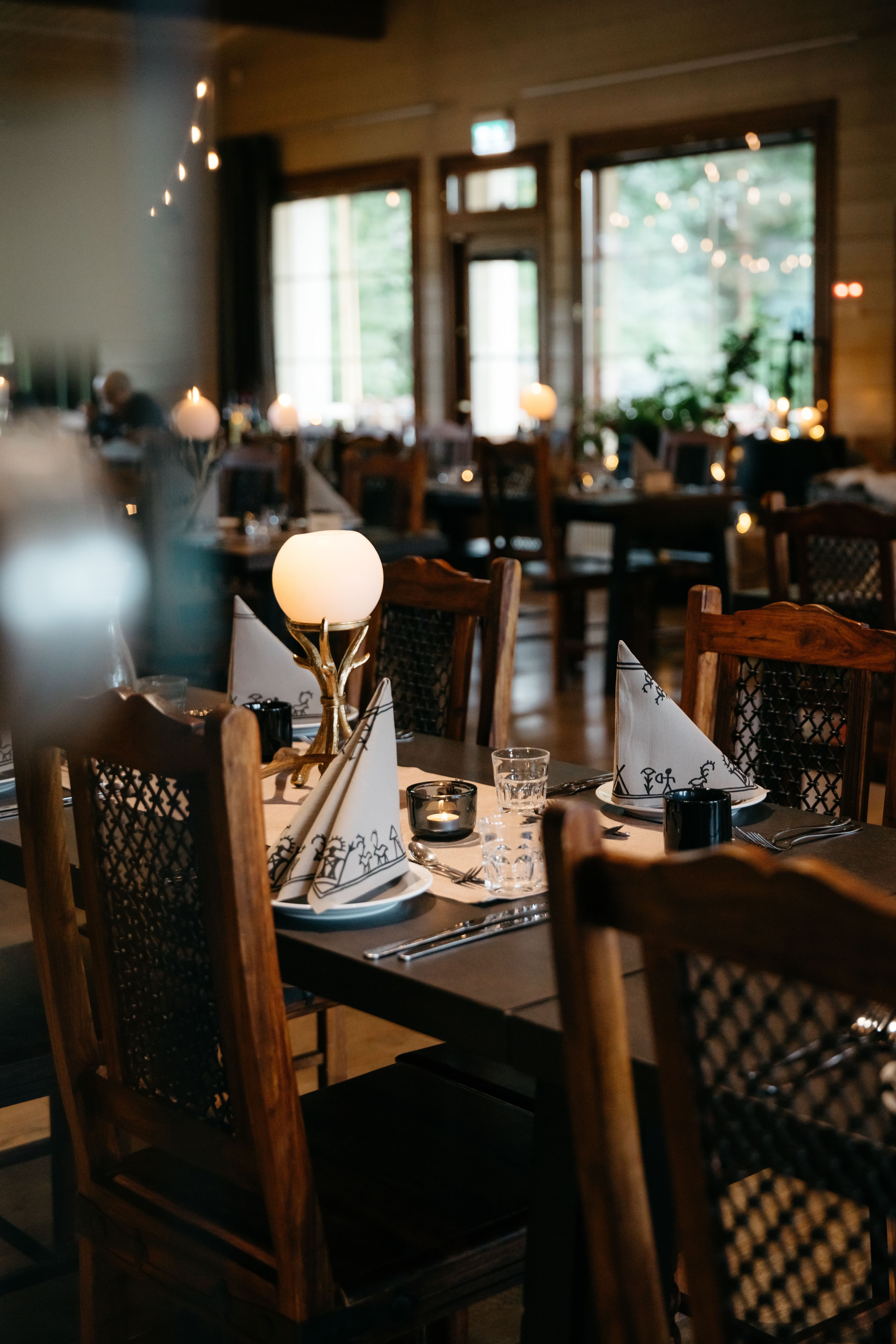 The restaurants at Lapland Hotels Ounasvaara Chalets change with the seasons. During the winter season, Restaurant Thulia's breakfast of northern flavors is extended to include dinner. In summer, the unique Summer Restaurant Sauna, located by the Kemijoki River, transforms into the WNTR Sauna. The Kota Restaurant, which operates as a private dining venue, is also available for reservation.