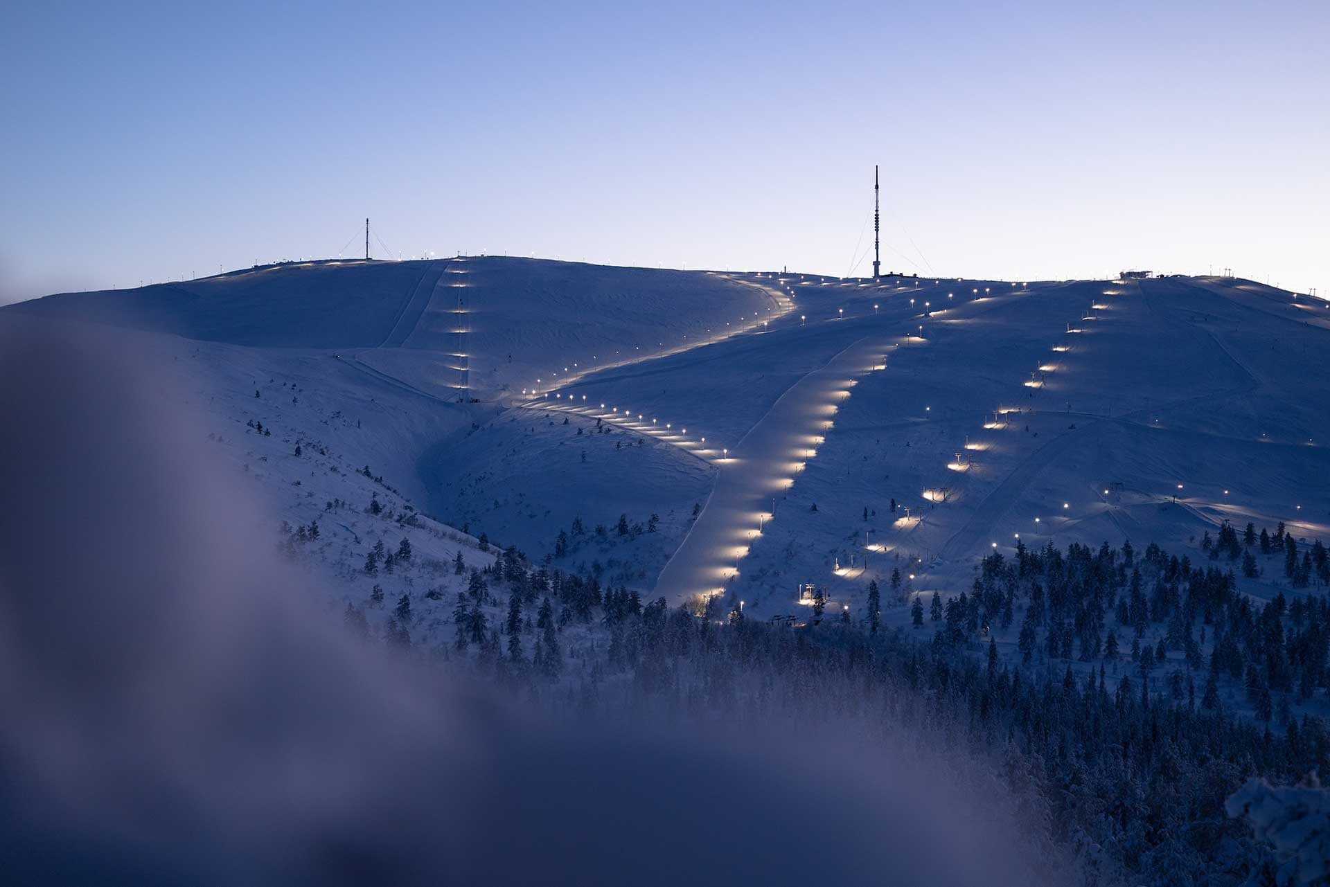 Legendaarisen Varkaankurun valaistus tekee siirtymästä tunturin puolelta toiselle sujuvampaa. Valaistuksen myötä Ylläksellä on nyt yhteensä 35 valaistua rinnettä, mikä kuuluu Suomen laajimpiin valaistuihin rinneverkostoihin, Huhtala kertoo.