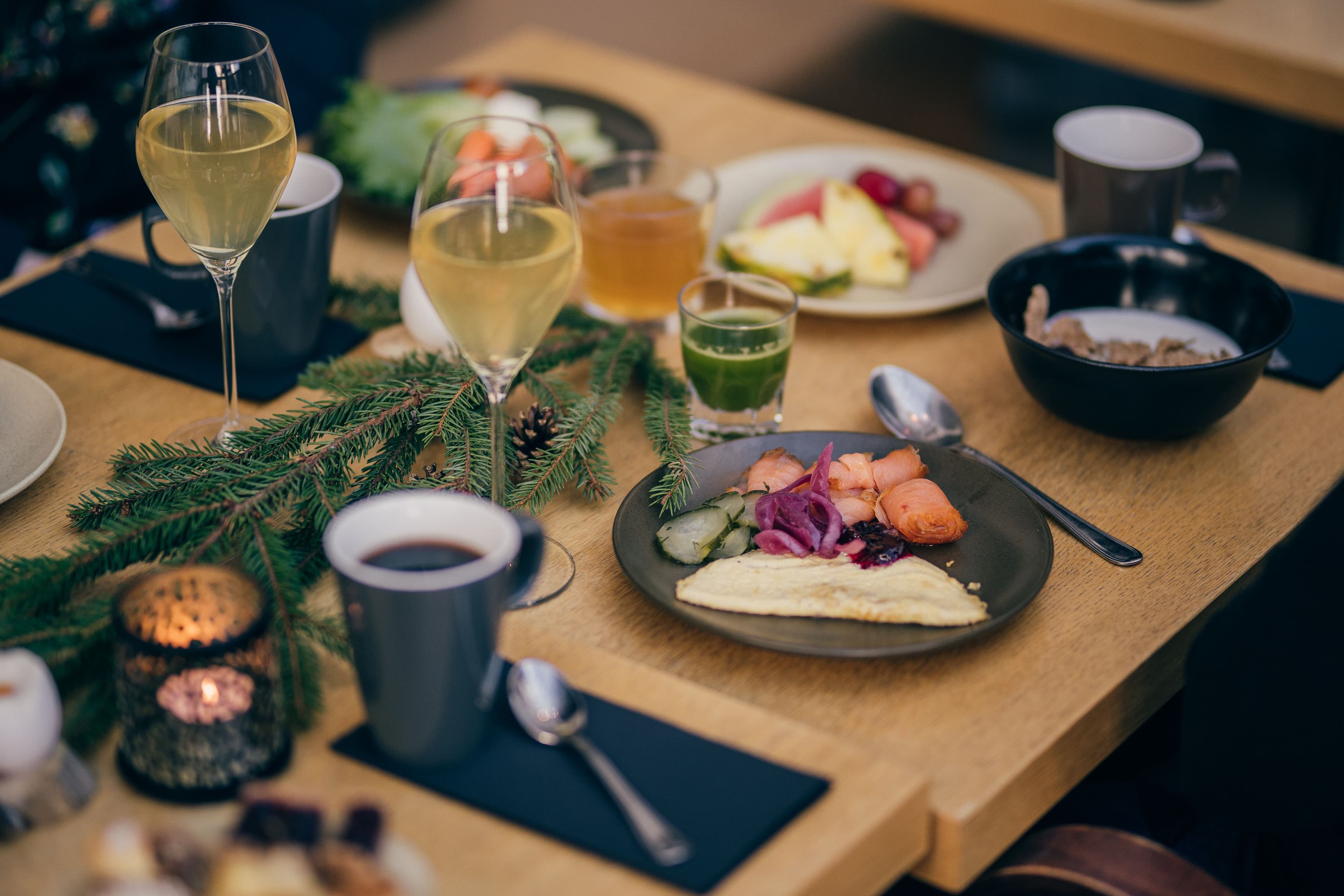Aamiainen sisältää kaikki hyvän päivän käynnistävät elementit Lapin vieraanvaraisuudesta ja aidoista makuelämyksistä kiireettömään pohjoisen tunnelmaan. Ravintola on suositun poromustamakkaramme synnyinpaikka ja aamiaisella havunoksien siimeksestä löytyvät lisäksi mm. suussa sulavaa kaurahelmipuuroa sekä pohjoisen kaloja ja marjoja. Tilauksesta kokkimme valmistaa sinulle munakkaan toivomillasi täytteillä.