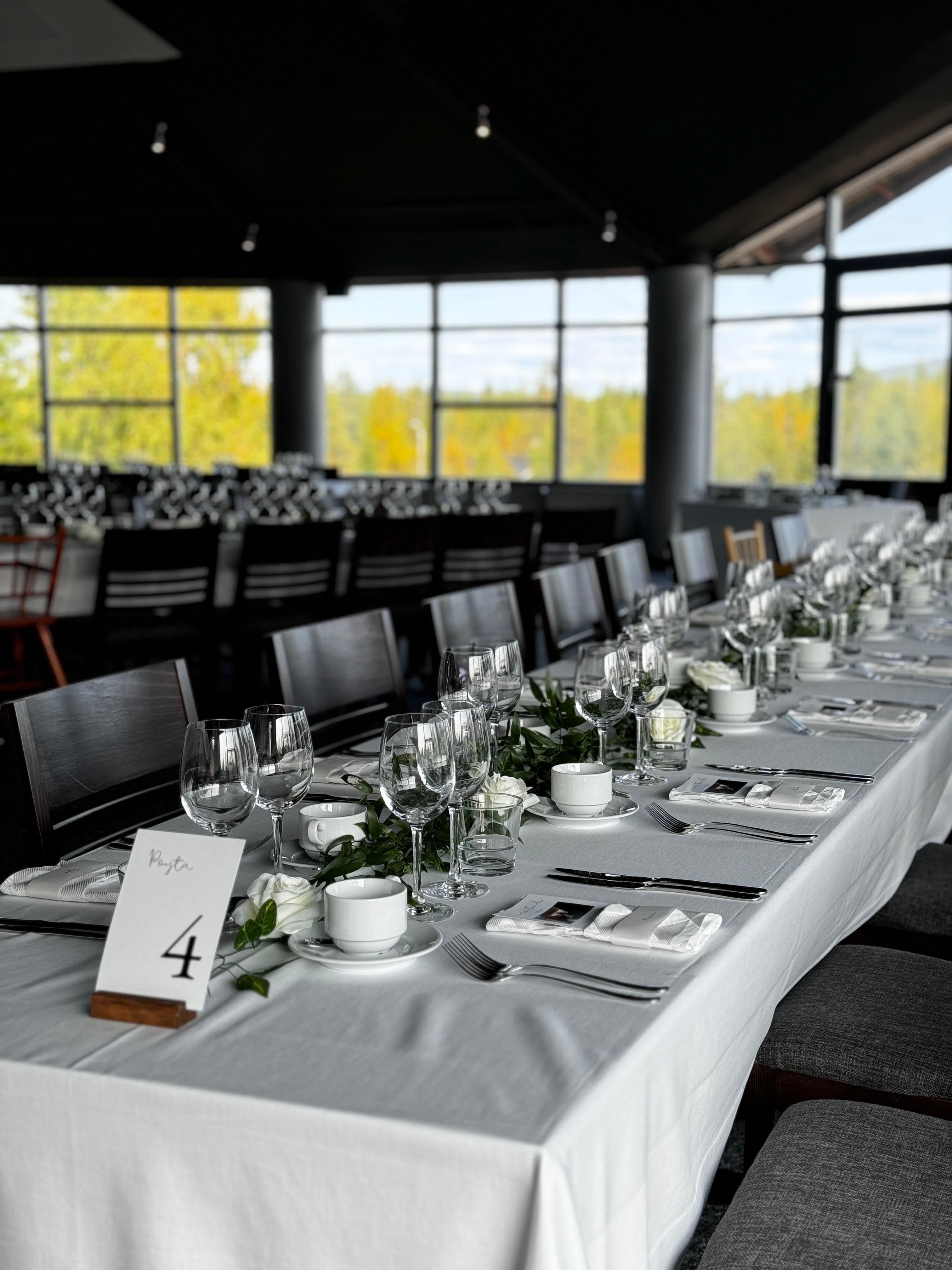 Normaalin kattauksen lisäksi pöytiin taitellaan lautasliinat ja sytytetään kynttilät. Valkoiset pöytäliinat ja kangasservetit saatavilla lisämaksusta. Kukat, pöytäkortit ja muut koristelut asiakas voi toimittaa ja hoitaa itse sovittuna aikana, tai tilata henkilökuntamme hoitamaan ne erillistä korvausta ja ohjeistusta vastaan.