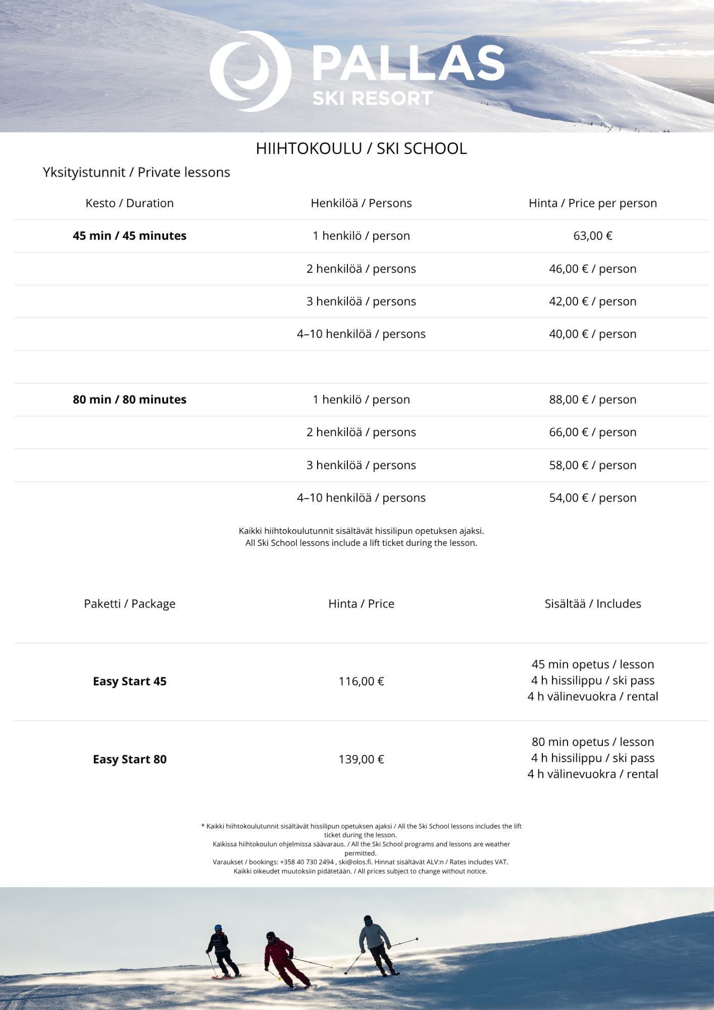 Come and enjoy the magical winter atmosphere and improve your skills at Pallas Ski School!