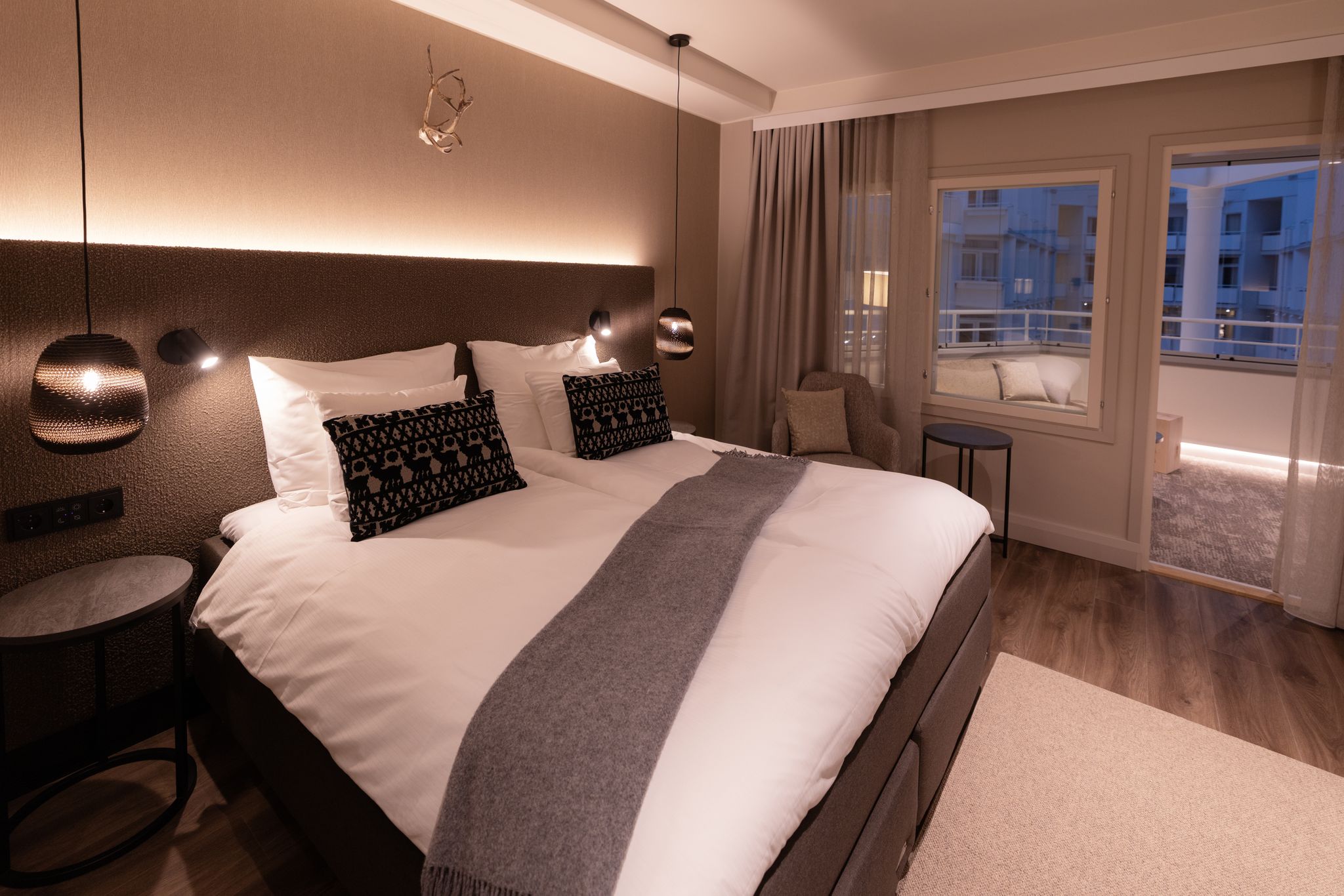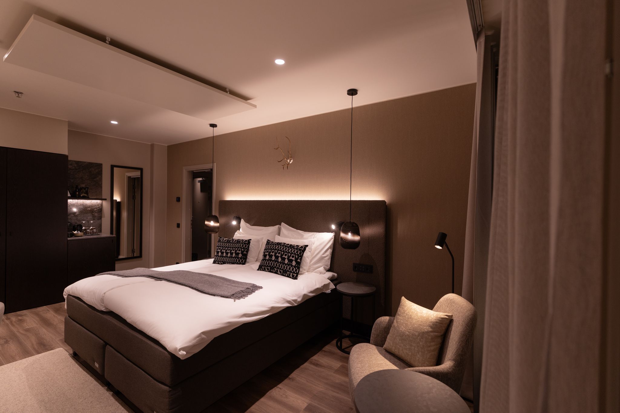 Tunnelmallinen Lapin lumoa henkivä huone omalla saunalla kutsuu rentoutumaan pohjoisen tunnelmassa. Nuku levolliset yöunet laadukkaassa sängyssä ja kietoudu pehmeisiin kylpytakkiin ja -tossuihin. Huoneen harmoninen värimaailma sekä moderni kylpyhuone saunalla ja kylpyammeella johdattavat vieraansa pohjoisen rauhaan. Lisämukavuutta vierailuusi tuo erikoiskahvinkeitin, minibaari sekä männyntuoksuiset kylpytuotteet. Osassa huoneista on parveke katetulle sisäpihalle.